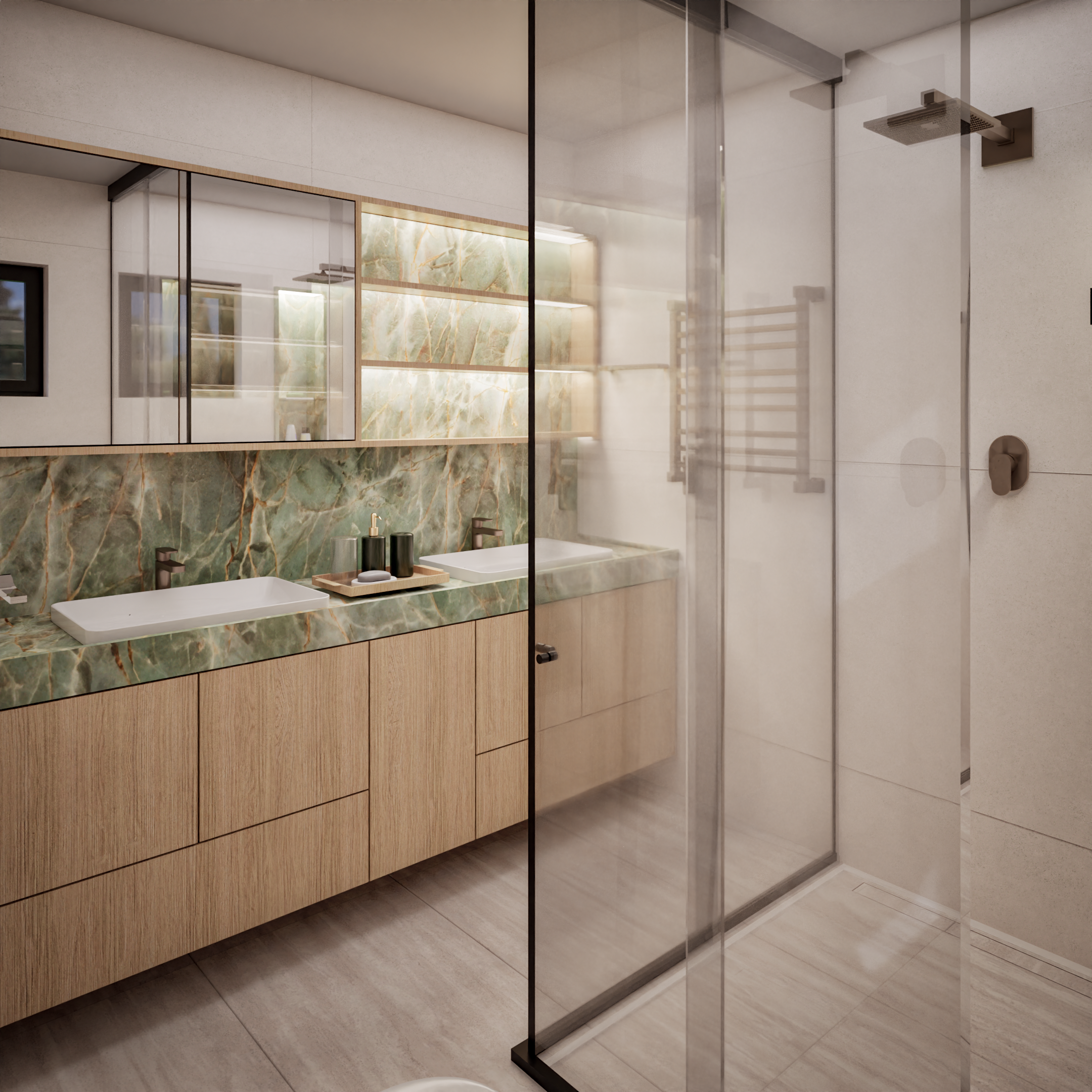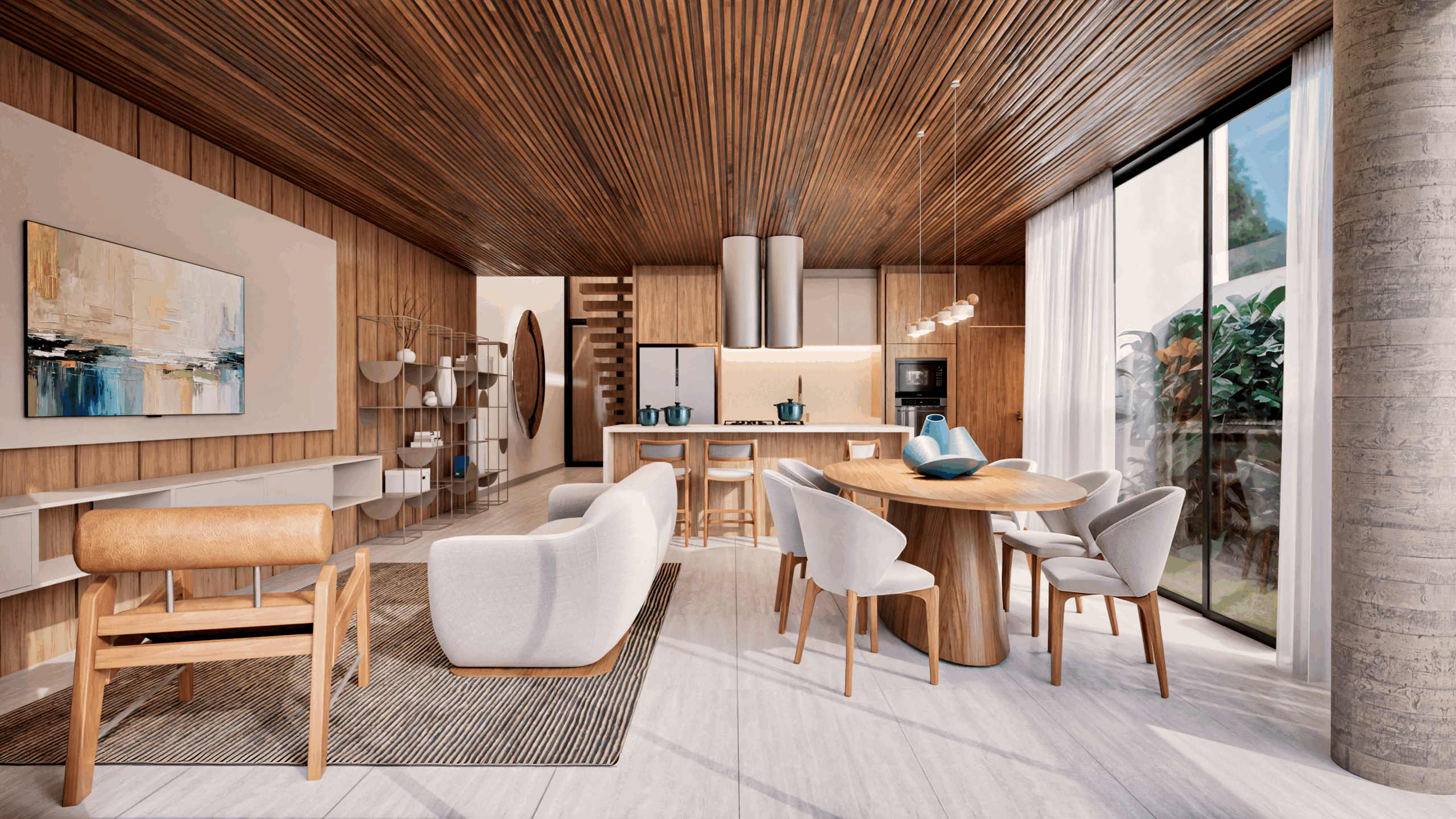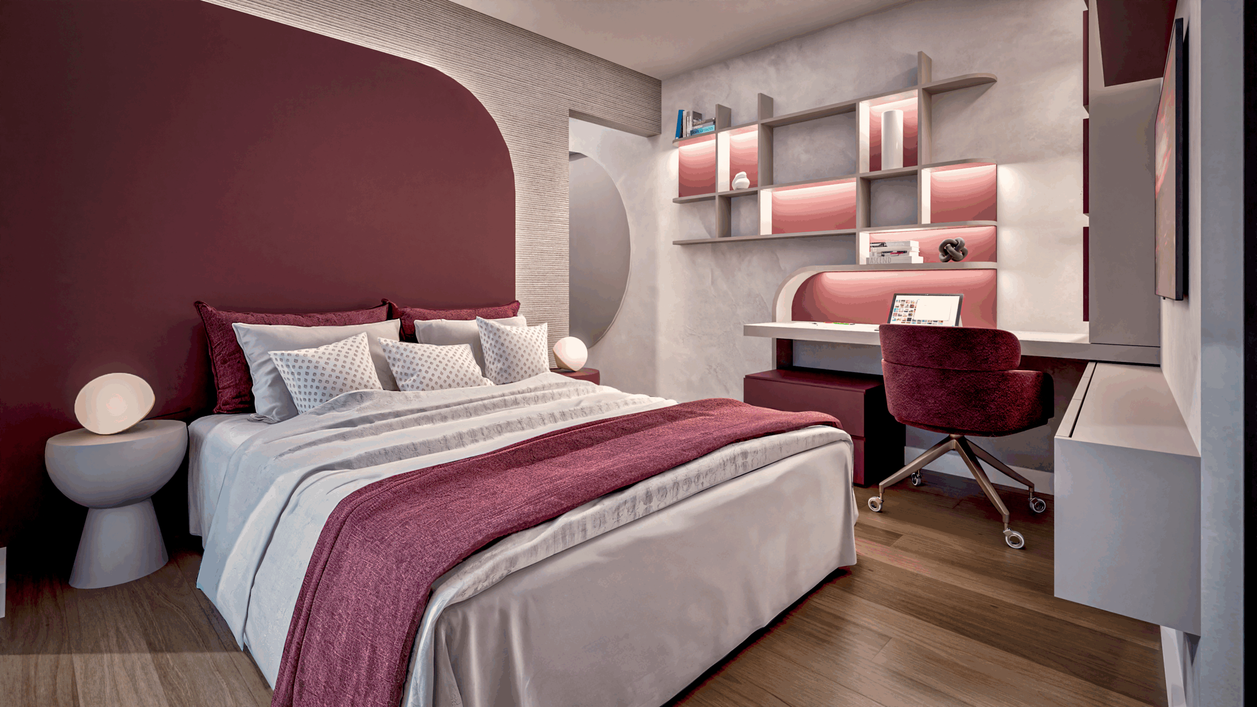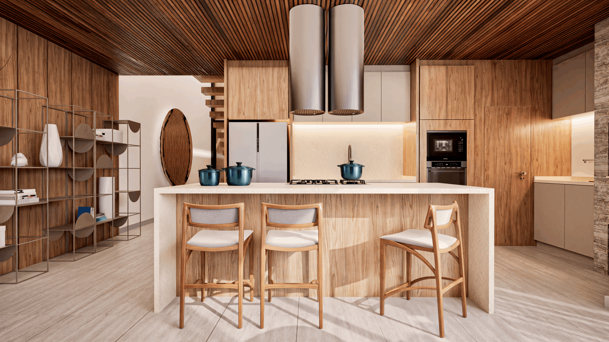 Em fase de desenvolvimento, o projeto revela ambientes acolhedores e elegantes, com destaque para o uso de tons naturais, texturas marcantes e iluminação cuidadosamente planejada. Cada detalhe foi pensado para refletir a personalidade dos moradores e proporcionar bem-estar no dia a dia.