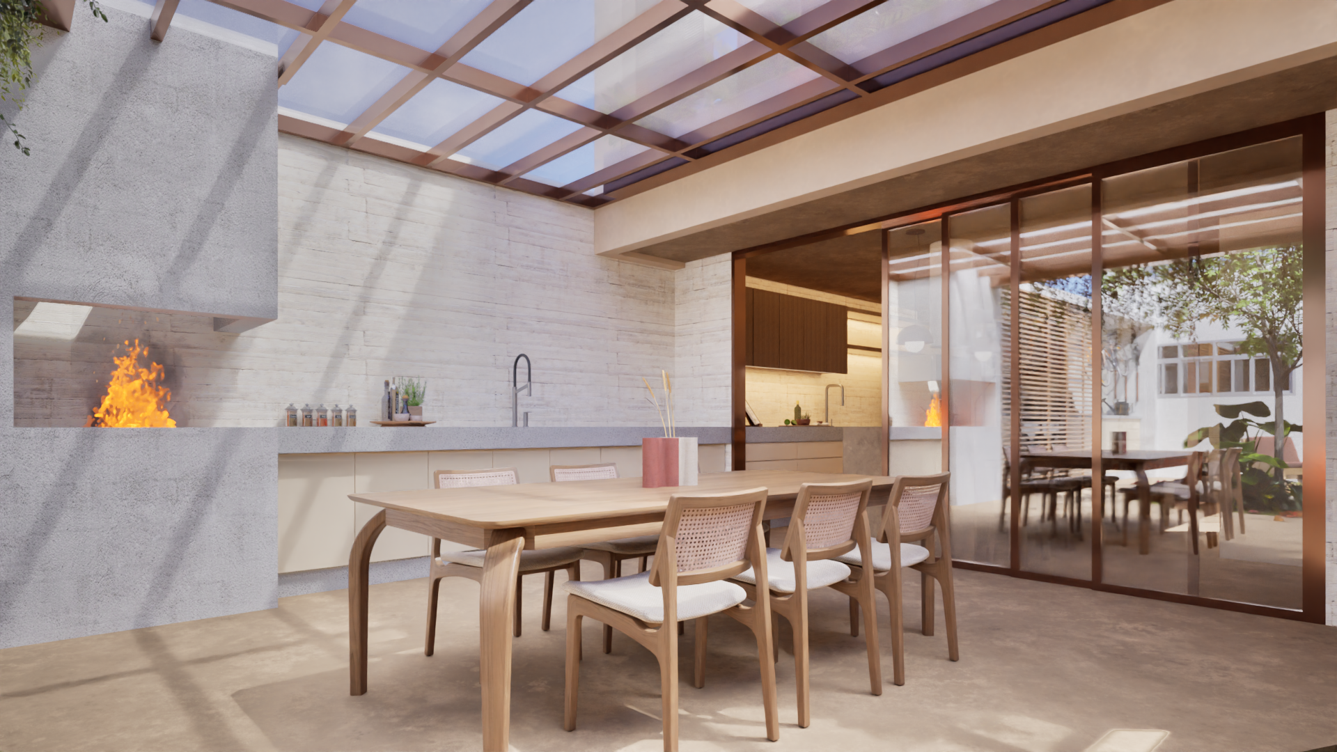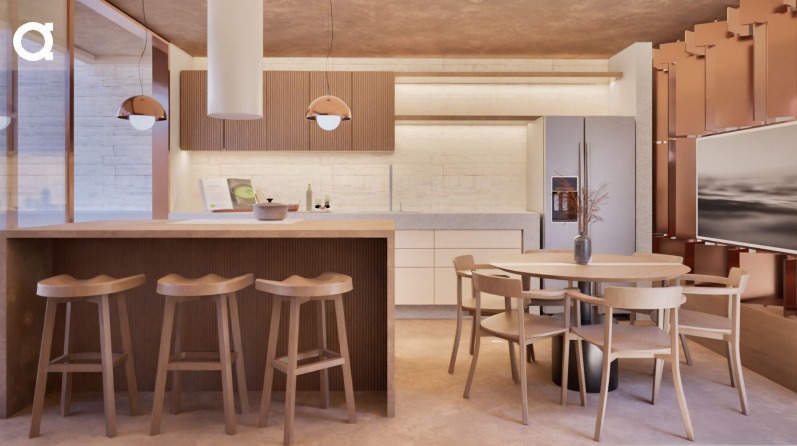 - Otimização: Área social fluida com churrasqueira e lounge externo com fire pit.